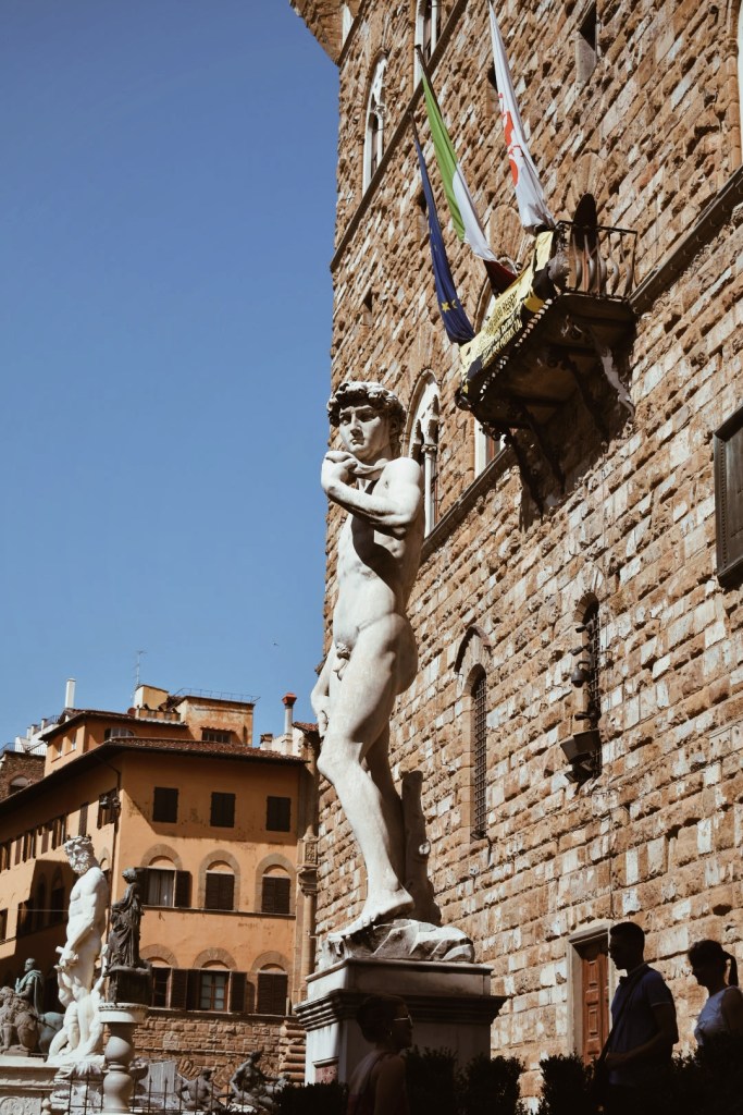 Piazza della Signoria is the main square of Florence and is where you’ll find the Palazzo Vecchio and a replica of Michelangelo’s famous David statue. The original statue can be found at the Accademia Gallery.